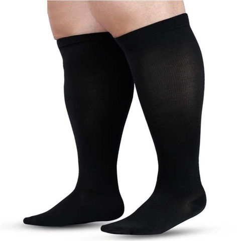 Venta caliente de alta elasticidad de compresión de talla grande hasta la rodilla calcetines de punto atléticos para todas las estaciones
